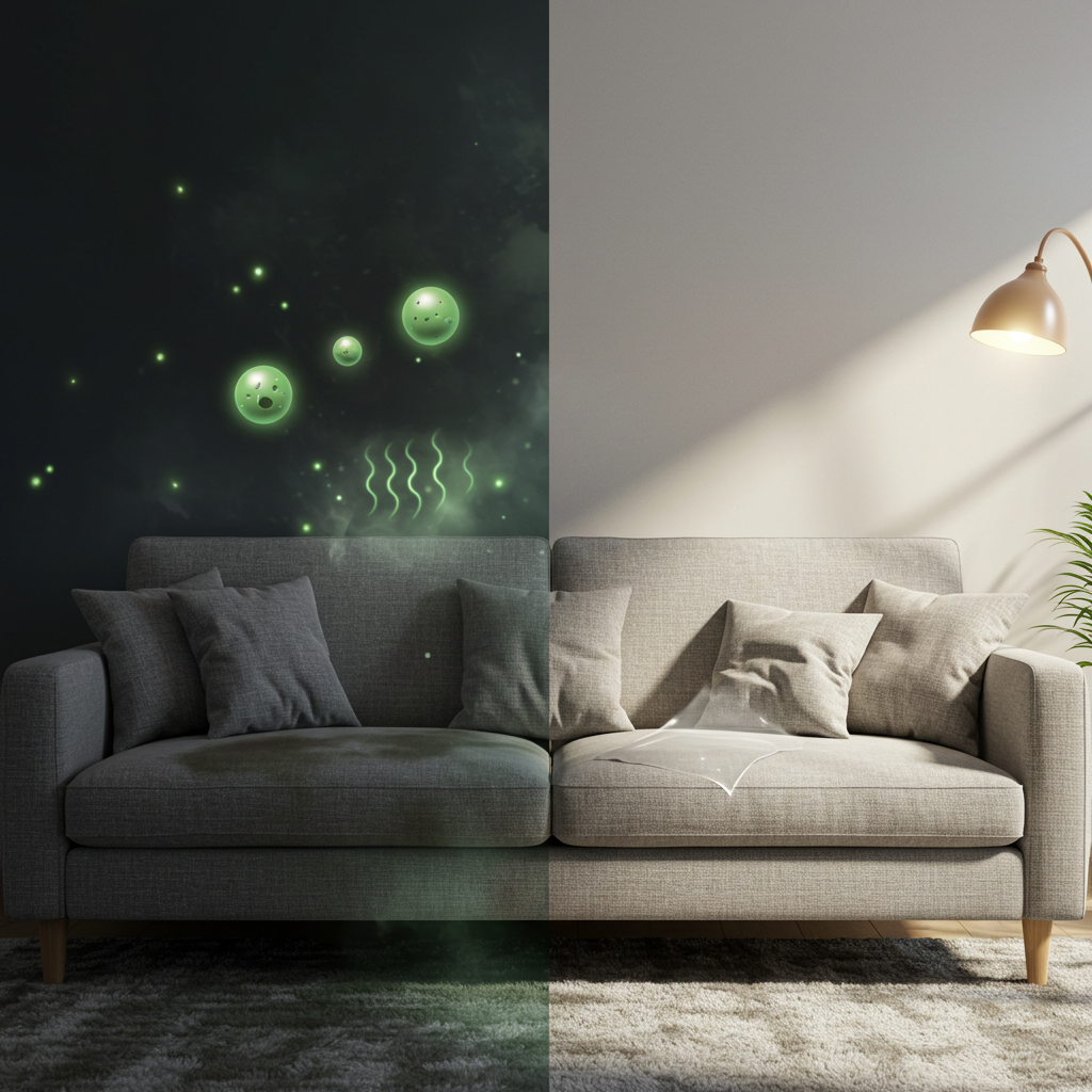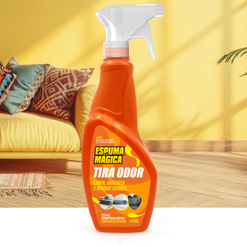 A fórmula exclusiva da Espuma Mágica Tira Odor elimina manchas e odores com eficiência comprovada em laboratório. Mais do que limpar, higieniza e previne o acúmulo de sujeira.